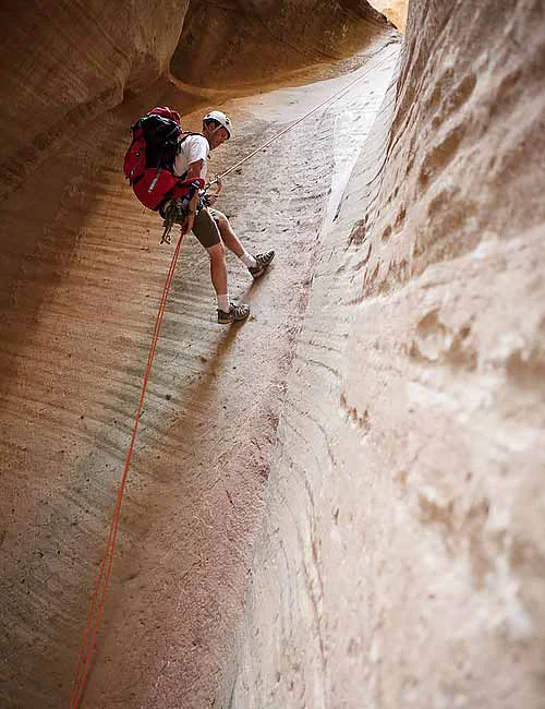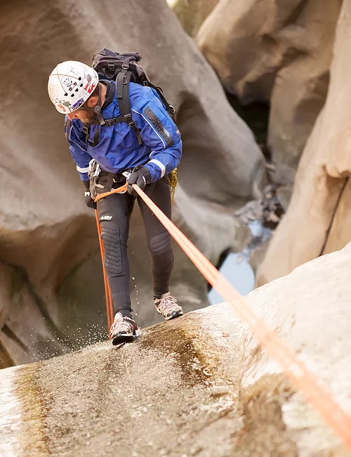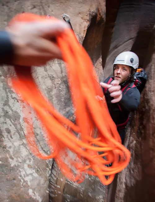 Rappelling with a guiding line in Water Canyon.